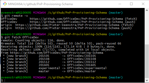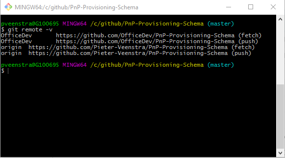 git remote add OfficeDev https://github.com/OfficeDev/PnP-Provisioning-Schema