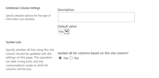 Note: When I updated the default value I did select the “Update all list columns based on this site column”.