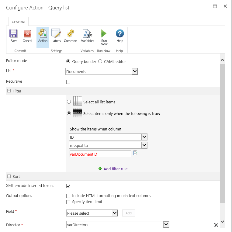 Now I’m splitting the varDirectors collection into single text line varDirector variable and I’ve collected the information needed to update my task.
