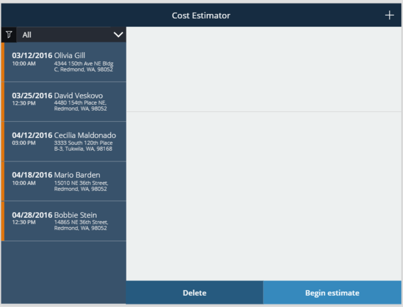 In this post I’m going to look at the Cost Estimator. The Cost Estimator App is an example app which builders can use to estimate the costs for a new bathroom or kitchen.
