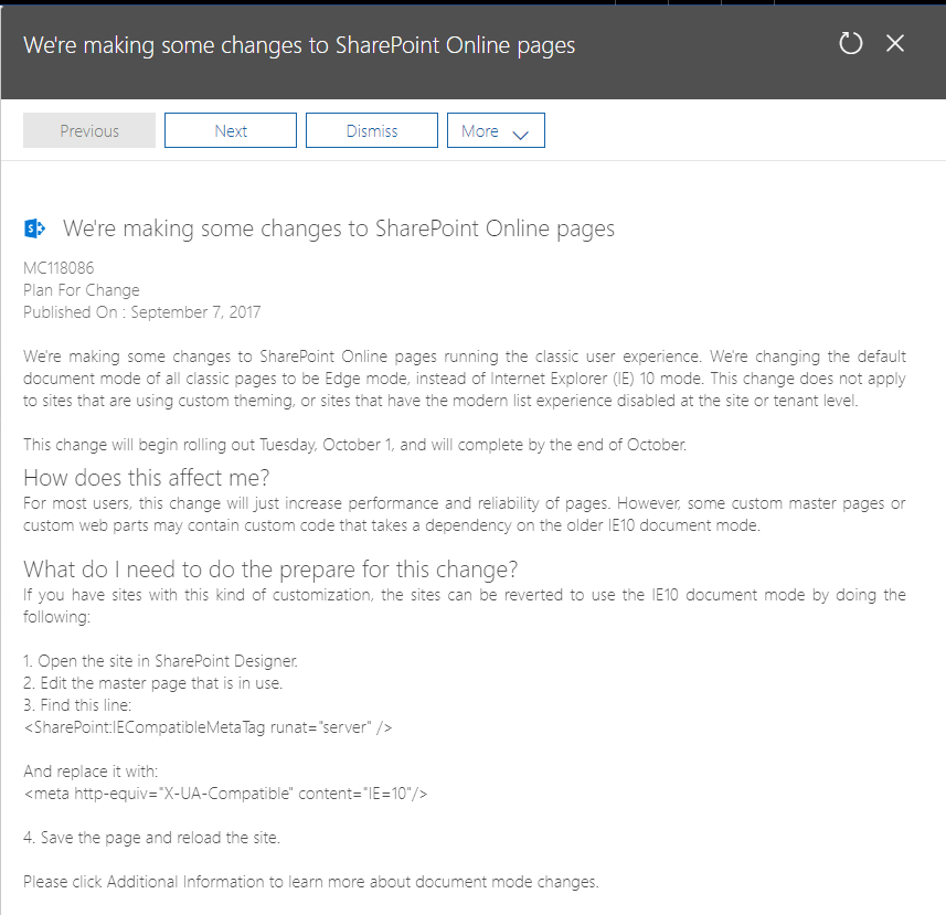UPDATE FROM MICROSOFT: After further consideration, we are not rolling out this change, now. Based on your feedback, we have a few things weโre going to work on. If we roll this out, in the future, you will see a new message center post.
