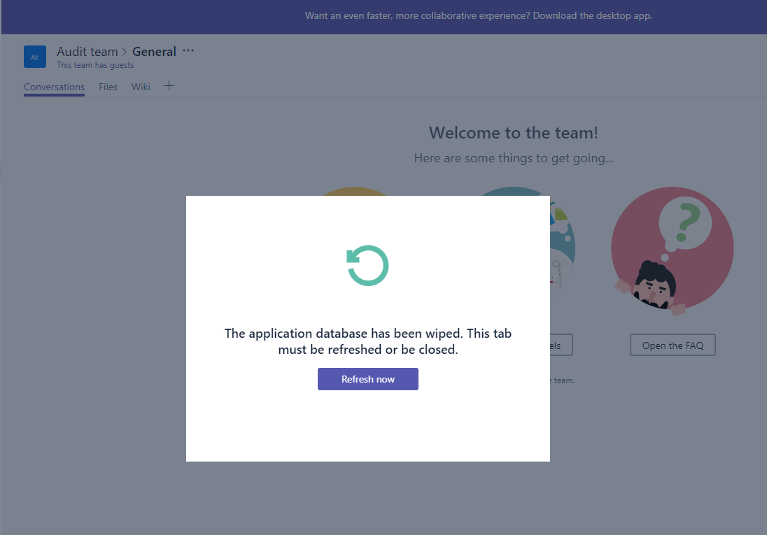 - Log out of Microsoft Teams in one tab, the other tab now gives the error.