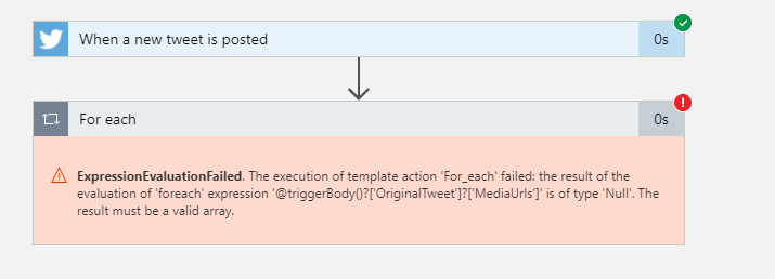Hi Sandy, this actually happens every time the trigger returns no tweets. So when the array of tweets is empty the for each doesn’t run without failures. The workaround is described in part 3 of this series.