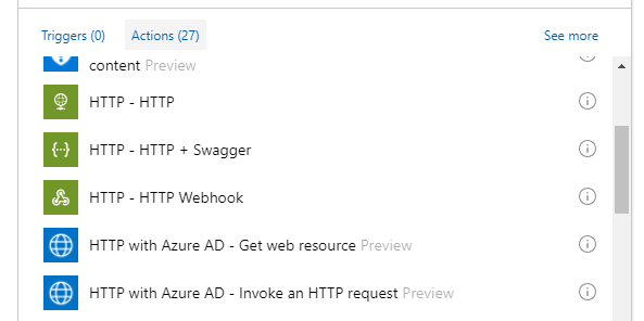 | Call HTTP Web Service | Within Azure Logic you can create HTTP calls to webservices, however quite often you will find that a specific Connector already exists for the application that you try to integrate with. Therefore the need for a plain HTTP call might not be needed.