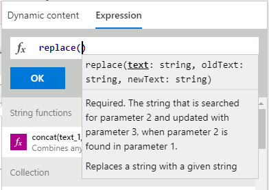 | Replace Substring in String | Logic Apps and Flow have an expression replace available that can handle all of the replace actions in SharePoint Designer: |
