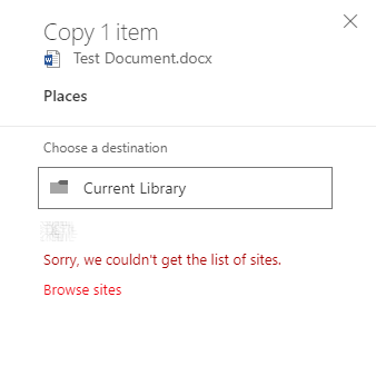 But this Sorry, we couldn’t get the list of sites message is a red herring. It simply means that you don’t have any sites connected to Groups. e.g. Microsoft teams sites.